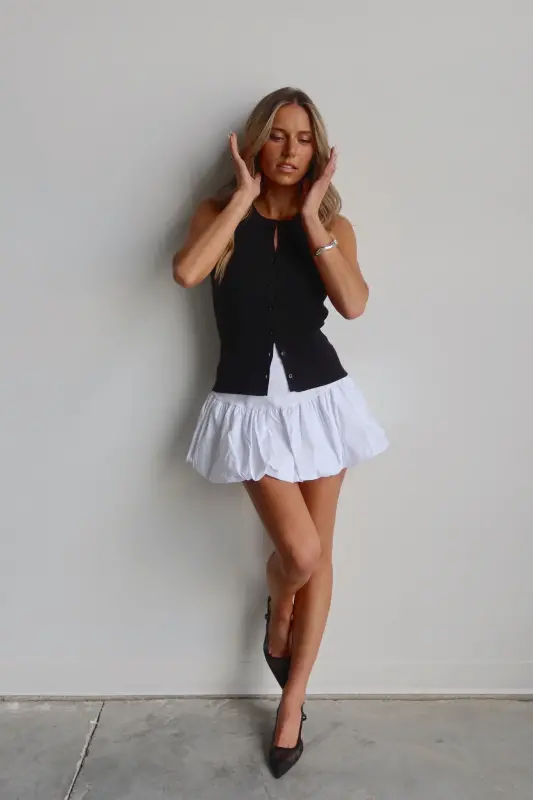 Elevate your everyday essentials with our Black Ribbed Button Up Sleeveless Tank. Crafted from premium ribbed material, this tank top offers a comfortable and flattering fit. The sleeveless design ensures ease of movement and breathability, making it perfect for layering or wearing on its own. The button-up detailing in the front adds a touch of sophistication and versatility, allowing you to style it up or down for any occasion. Whether you're heading to a casual brunch or a night out, this tank is your go-to choice for effortless style and comfort.
