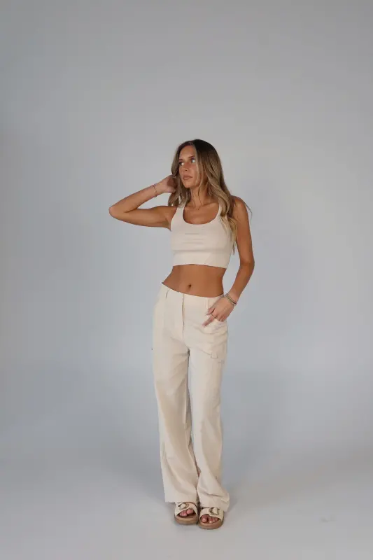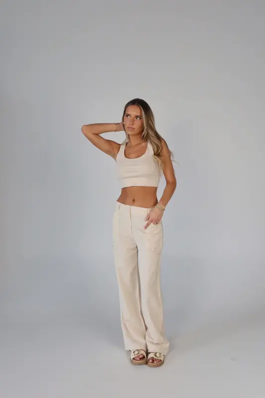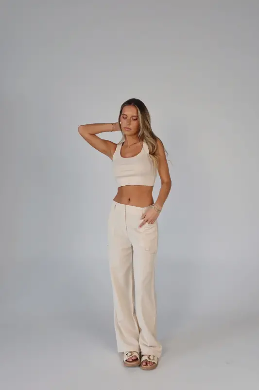 Elevate your basics with our Khaki Cropped Tank, designed for versatile styling and all-day comfort. This essential piece features a sleek, sleeveless design and a flattering cropped fit, making it perfect for pairing with high-waisted jeans, skirts, or shorts. Crafted from high-quality fabric, this tank top is both soft and durable, offering a timeless addition to your wardrobe. Whether you're layering it under a jacket or wearing it on its own, this khaki cropped tank is a must-have staple for any season.