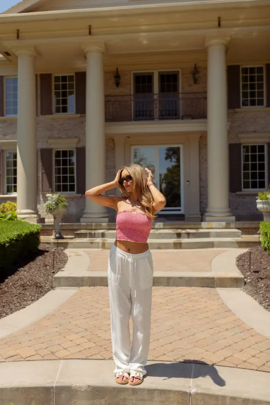 Introducing our Red and White Gingham Print Fully Smocked Strapless Tube Top, the perfect blend of classic charm and modern style. This top features a timeless gingham print in vibrant red and white, adding a playful touch to your outfit. The fully smocked design ensures a comfortable and secure fit, while the white tie detail in the front adds a touch of elegance. Whether you're heading to a picnic or a summer party, this tube top is sure to make a statement.
